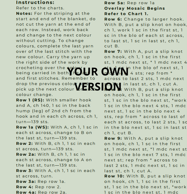 - Overlay mosaic crochet technique for rich texture without endless yarn changes.